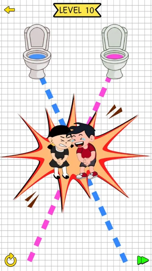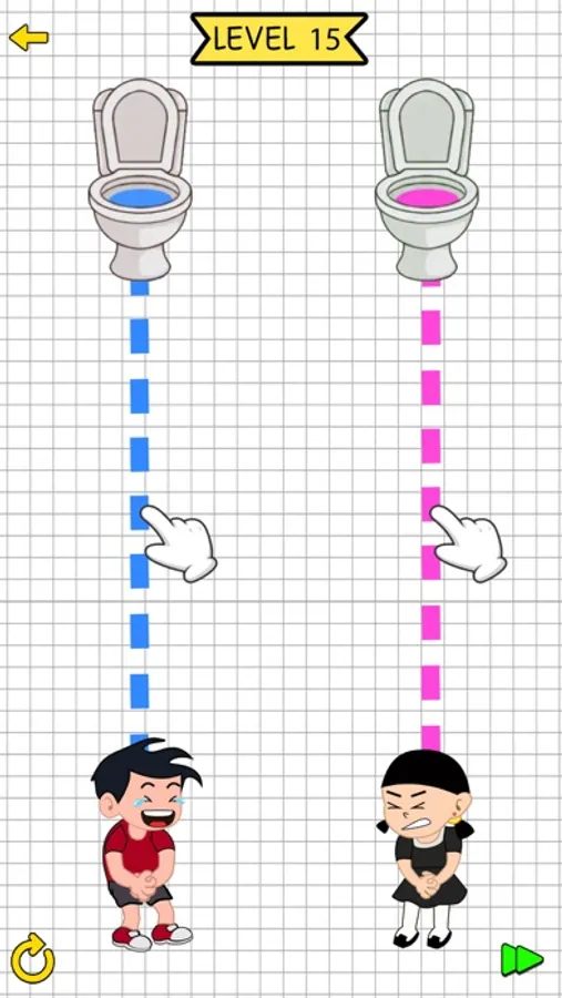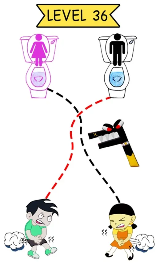 Carefully draw the line from the character to the toilet seat. Look out for the cows, cars, stones, walls and any obstacles and do not let anyone wait for a long time or they won’t be able to handle the pressure.