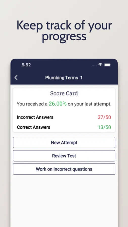 - We randomise questions and answers every time you start a practise exam to keep you engaged.