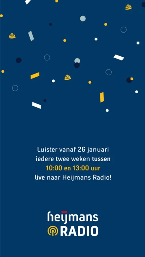 Heijmans Radio is hét radiostation van Heijmans voor álle collega’s! Of je nu al jaren bij Heijmans werkt of net bent begonnen. Of je werkt op de vloer of op kantoor. Vakman of vakvrouw. Vanuit het zuiden, noorden, oosten of westen. De Heijmans radio DJ’s Barry en Menno brengen heel Heijmans dichter bij elkaar. Geef je favoriete hit op voor de Heijmans top 100, win leuke prijzen met de radiospellen, hoor het laatste Heijmans nieuws en luister én zing mee!