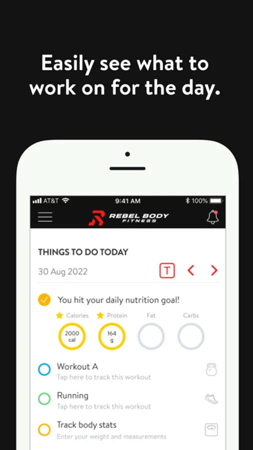 With the Rebel Body Fitness App, you will have access to workout programs designed specifically to help you reach your fitness and health goals! You can follow & track your workouts, your nutrition, your lifestyle habits, measurements and results–all with the help of your coach.