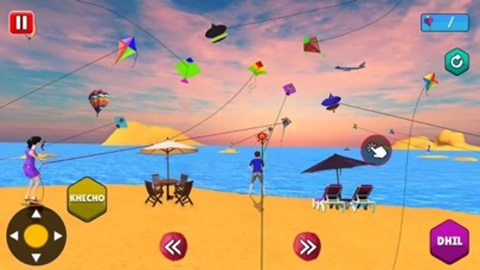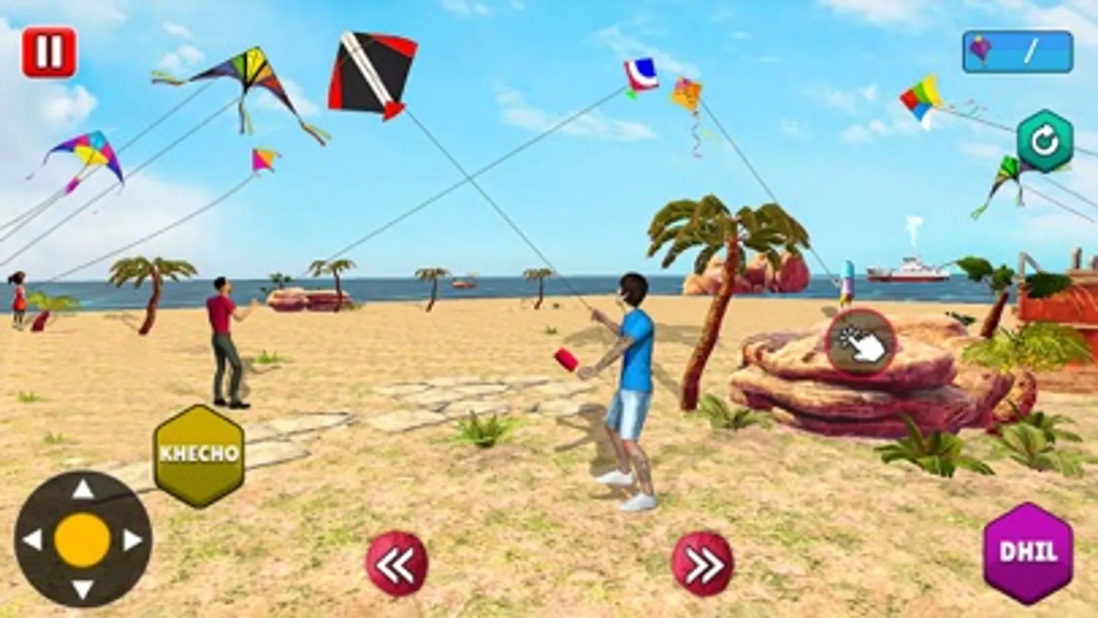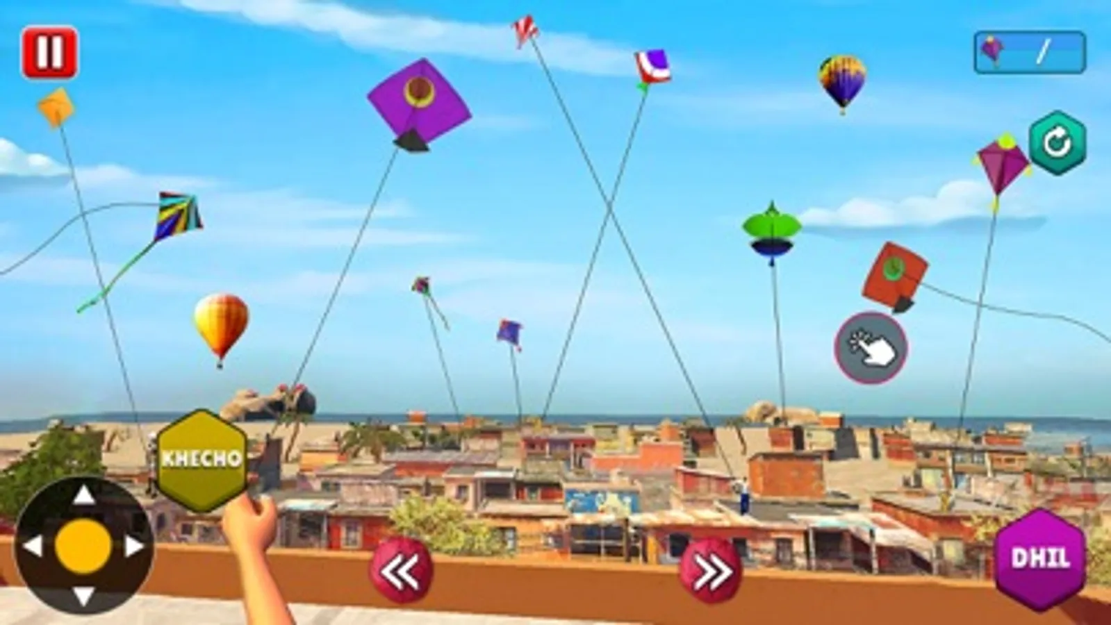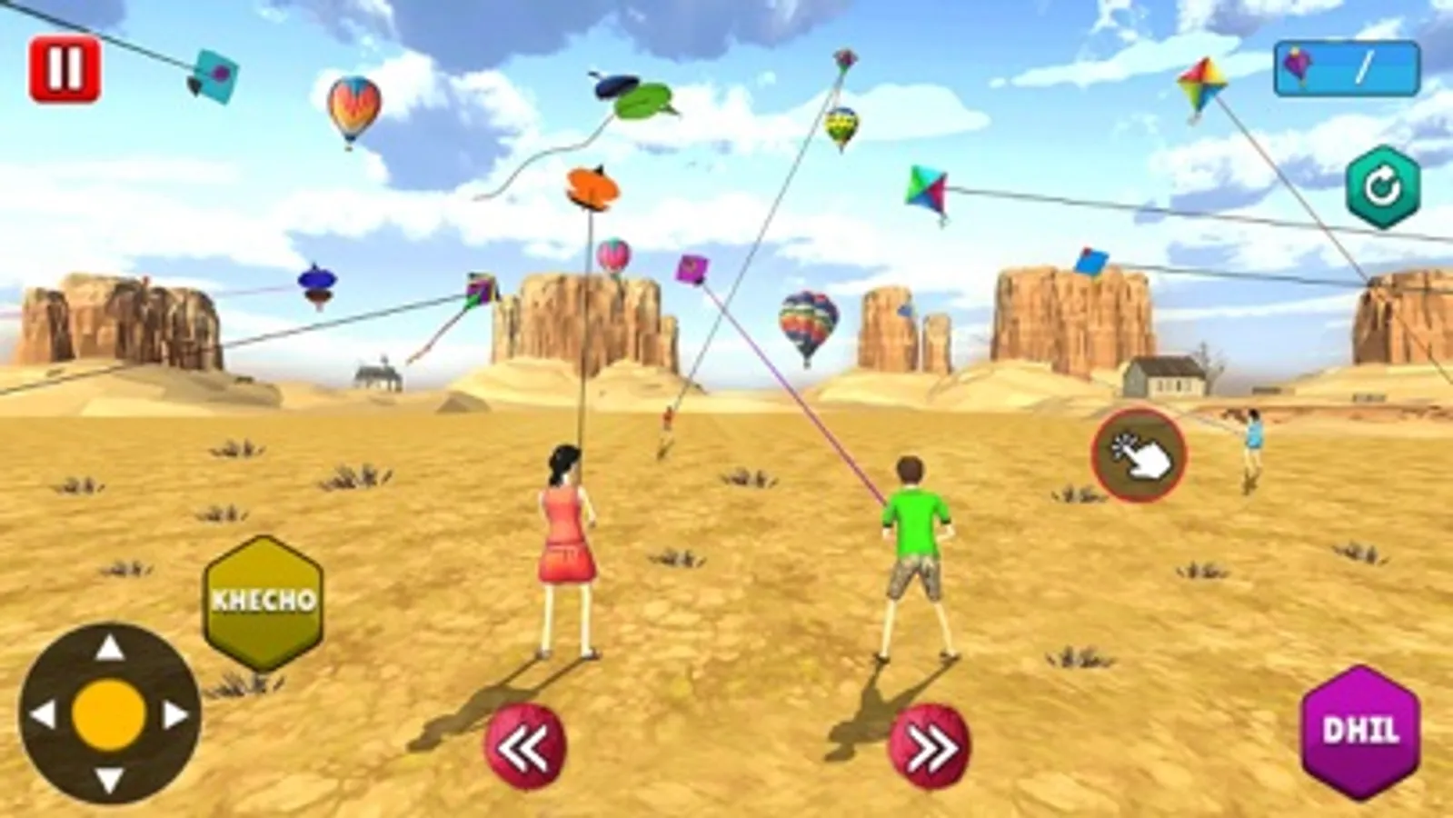 Tap on "Khech" button for khech, your tap speed decides khech speed. Festival, kites of shape panj tawa, pari, machar etc.