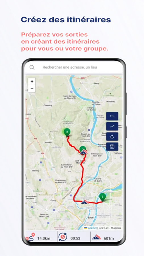 Créer ou importer des itinéraires et des parcours (fichier GPX, itinéraire Strava, Komoot ...) avant une sortie vélo, et l'utiliser lors d'une sortie pour vous indiquer l'itinéraire à suivre (suivi de parcours), et également de vous indiquer quand une ascension arrive, avec son profil, afin de pouvoir gérer l'ascension quand vous ne la connaissez pas.