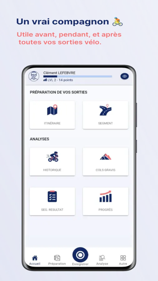 • Récolter des points et des badges pour chaque kilomètre parcouru ou col gravi.