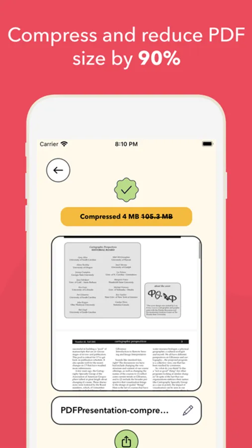 It does not get any easier than this! With Compress it!, you can compress your PDF documents in a matter of seconds, securely. Forget about over-complicated apps with nonsense features. Compress it! is the most secure and privacy oriented PDF compressor available.