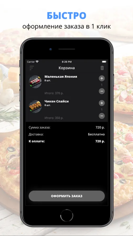 Скачивайте наше приложение, оформляйте заказ и наслаждайтесь любимой едой, где бы Вы ни были! Приятного аппетита!