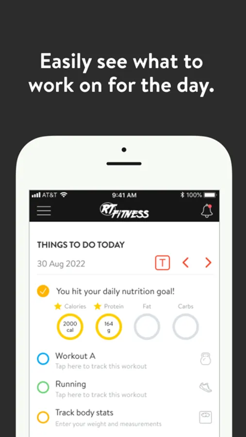 With the RT Fitness Online App, you will have access to workout programs designed specifically to help you reach your fitness and health goals! You can follow & track your workouts, your nutrition, your lifestyle habits, measurements and results–all with the help of your in house coach.