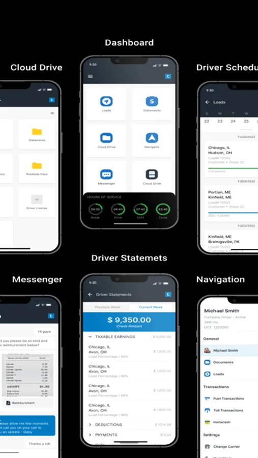 1. Scheduling: Manage and track your drivers' schedules, routes, and assignments with ease, ensuring optimal fleet coordination and efficiency.