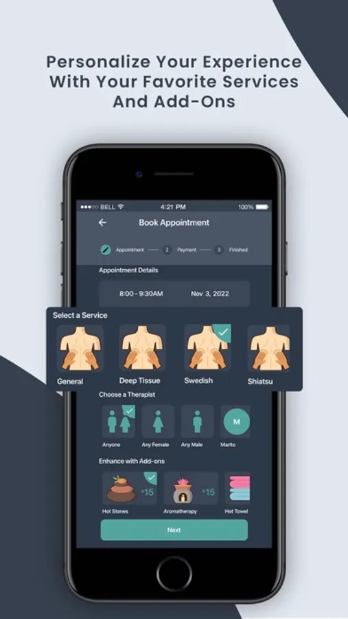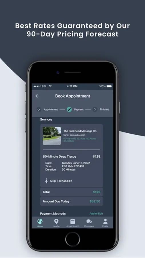 Now, you don't need to hop from business to business -and have to say goodbye to your favorite therapist- looking for the best rate possible. Set notifications based on your favorite locations and therapists, and book a service when the price is right for you! Instead of chasing your ideal rate, let the rates come to you!
