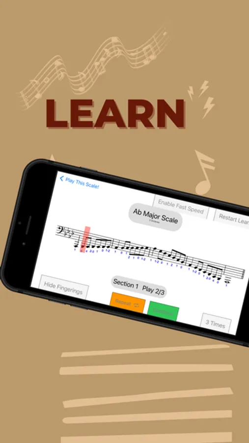 Scale Viewer Mode: View all the scales for your instrument in one convenient place. View fingerings and notes, play the scale, and access the learn feature for each scale you view.