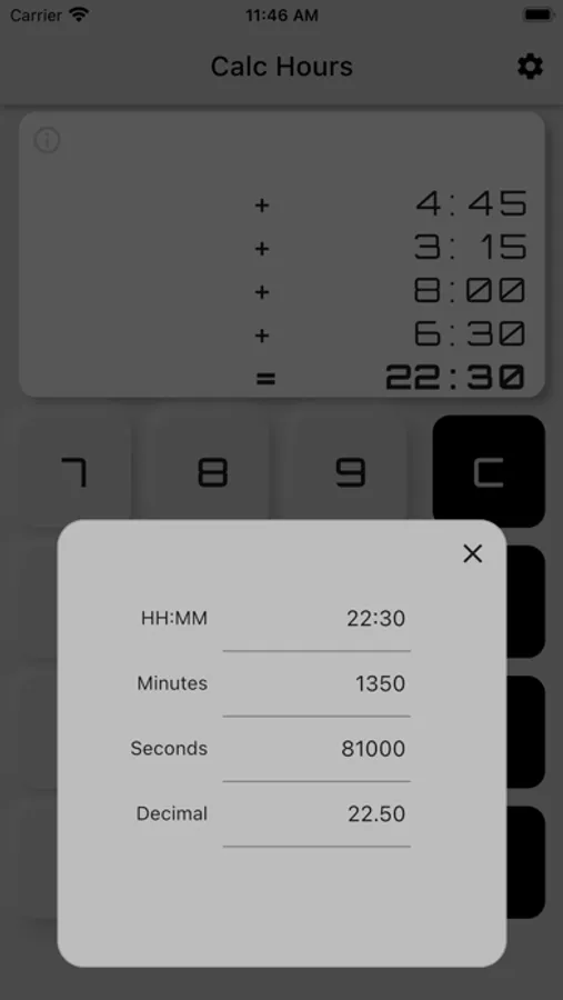Calculator for easily adding time (hours and minutes). Choose between adding hours and minutes in hh:mm format or minute format for great flexibility.