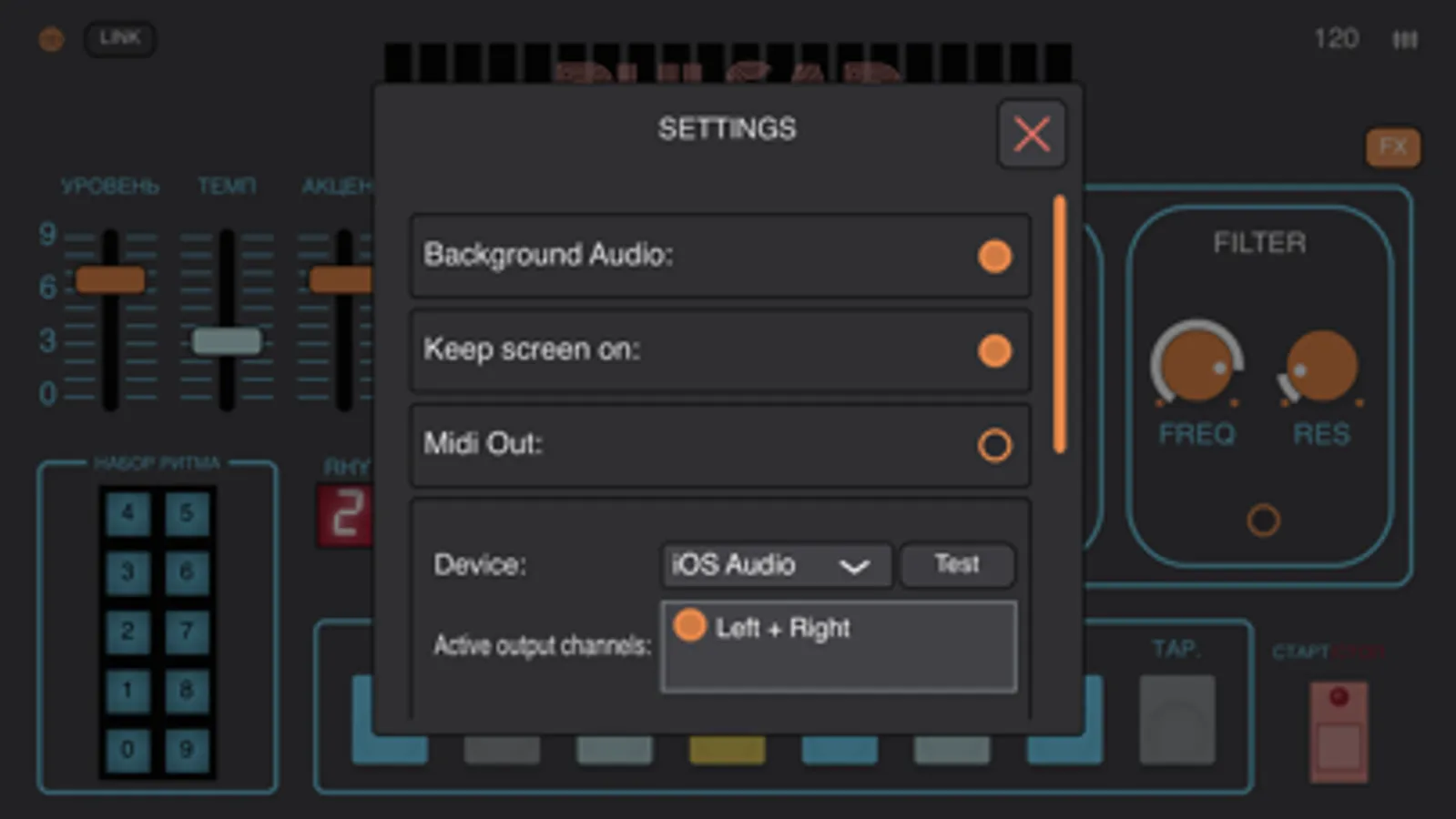 “Midi In/Out” is a feature that allows Pulsar-ES to send and receive MIDI messages to and from external MIDI devices, such as keyboards, synthesizers, drum machines, MIDI-enabled instruments and other iOS applications.