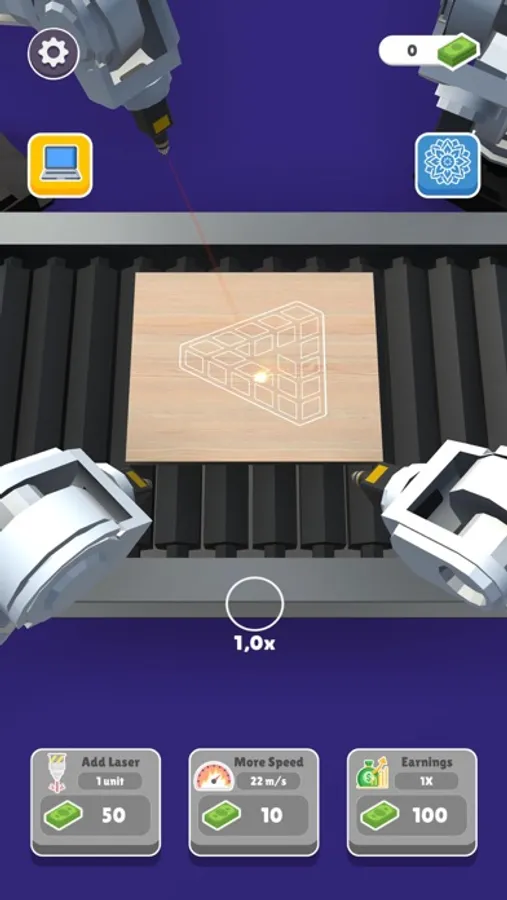 Create your own unique pattern with this fun laser engraving game. Tap tap to speed up and upgrade your machine. Make more money and choose more products to engrave.