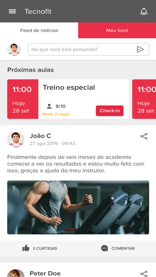 Através do app Equipe Dynamic Fitness o aluno pode interagir com sua rede pela timeline, acessar sua ficha de exercício com histórico de evolução de cargas, acompanhar suas avaliações físicas e fazer check-in nas aulas. Tudo isso na palma de sua mão para deixar seu treino mais dinâmico e interativo.