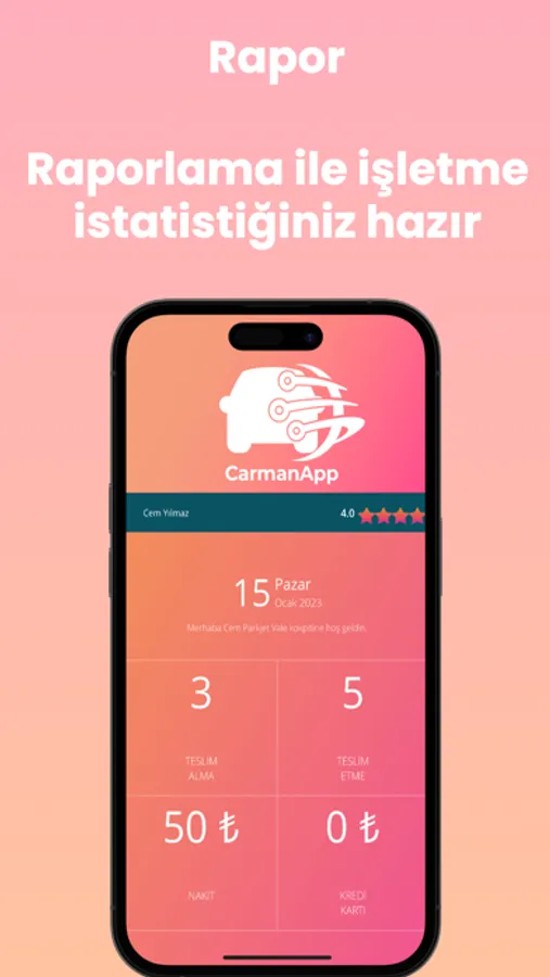 CarmanApp mobil uygulamasını kullandığında yakınındaki otopark ve vale servislerini kolayca bulur, gideceğin yere en kısa ve hızlı rotayı öğrenir ve hiçbir zaman ödeme için sırada beklemezsin. CarmanApp ile aracını ister vale, ister biletli otoparklarda hızlıca park eder, sorunsuz ve kolay otopark deneyiminin keyfini çıkarırsın. CarmanApp anlaşmalı otoparklara bilet almadan girebilir, vale servislerinde sana özel QR kodu ile dijital olarak aracını bırakıp, bir tık ile hızlıca çağırabilirsin.