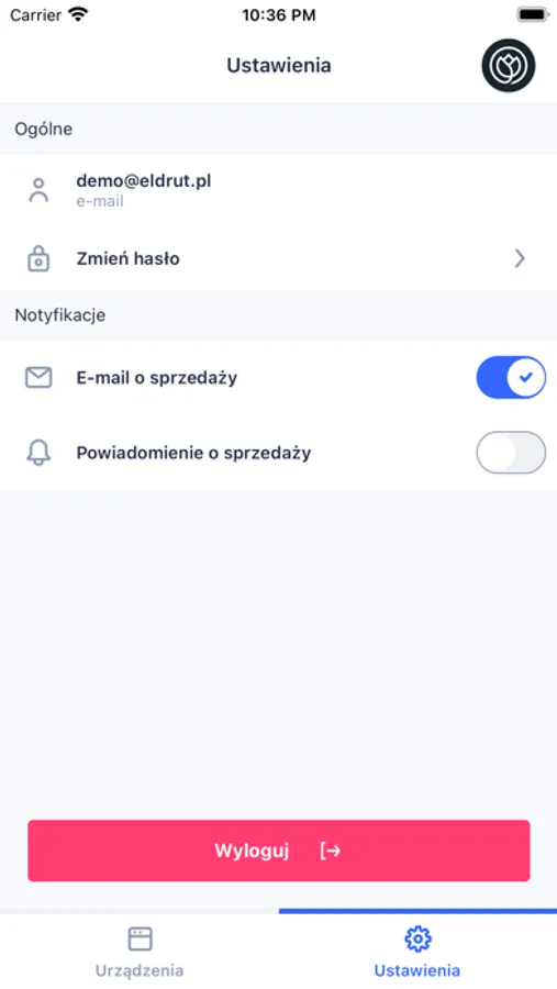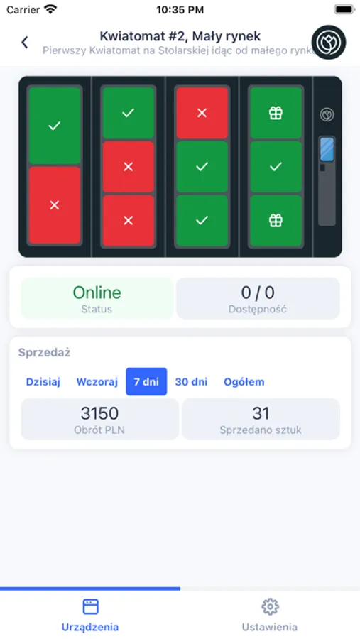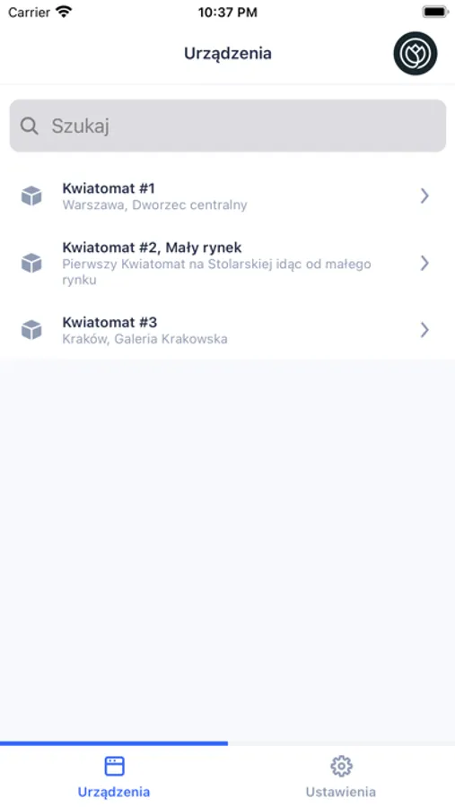 Aplikacja do zarządzania urządzeniami typu Kwiatomat 24.