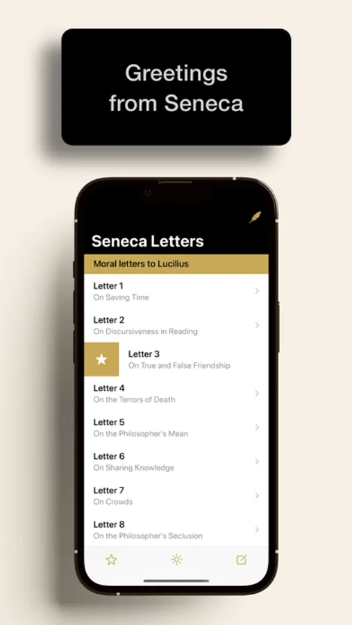 Seneca is an outstanding Roman Stoic philosopher, poet, playwright, statesman, one of the largest representatives of Stoicism. This is probably the most widely read work by Seneca. Written in simple and wise language, the letters can still serve as a guide to a morally correct life today. The application is made for those who want to get acquainted with the primary source of the popular philosophical school of Stoicism today. The application contains 124 letters for all occasions.