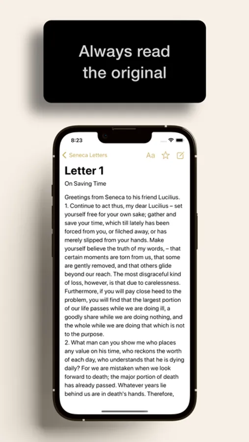 The application contains a treatise by Seneca "Moral Letters to Lucilius" - the result of the life reflections of the famous ancient Roman Stoic philosopher Seneca.