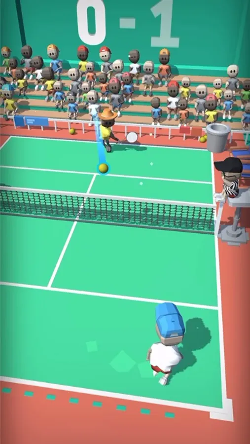 Tennis Pro is a complete mobile tennis game. The game consists of tournaments with a cup at the end of each tournament. Each tournament consists of 3 games, and in case the players loses, the tournament starts over. The match ends when either the player or the opponent scores 3 points.