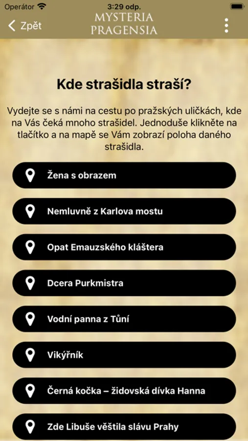 Aplikace obsahuje audioprůvodce pro návštěvníky přažských muzei : Muzea alchymistů a mágů staré Prahy nebo Muzea pražských pověstí a strašidel. Aplikace též obsahuje program Divadla Apropo, menu alchymistické hospůdky Kellyxír a mnoho dalšího.