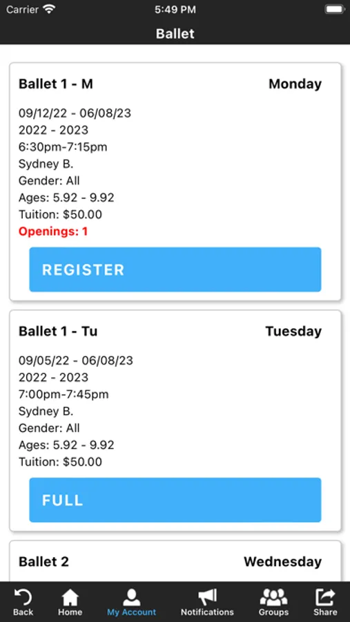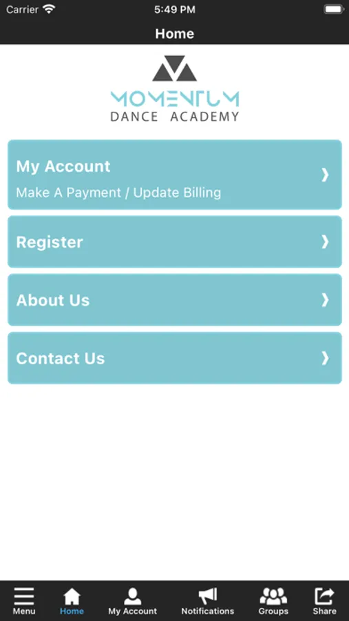The Momentum app allows you to manage your account with ease, register for classes, parties, and special events. You'll also receive important notifications about class changes, closings, registration openings, special announcements, and upcoming events.