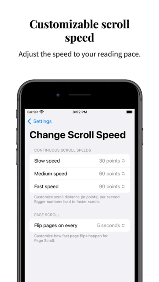 - Customizable scroll speed: Adjust the speed to find the perfect pace for your reading preferences.