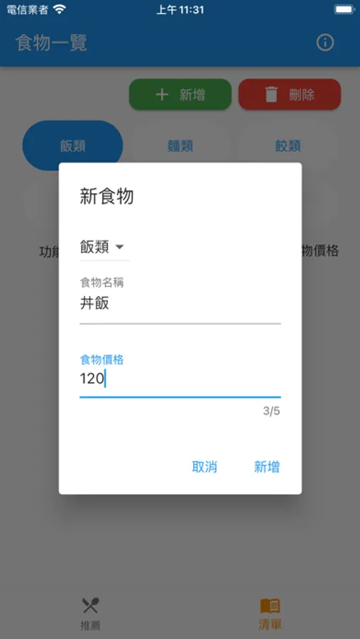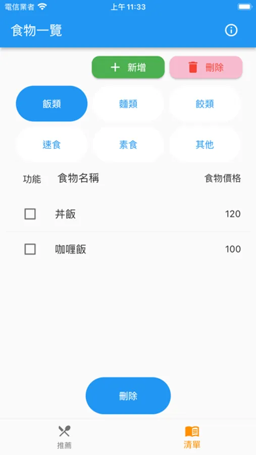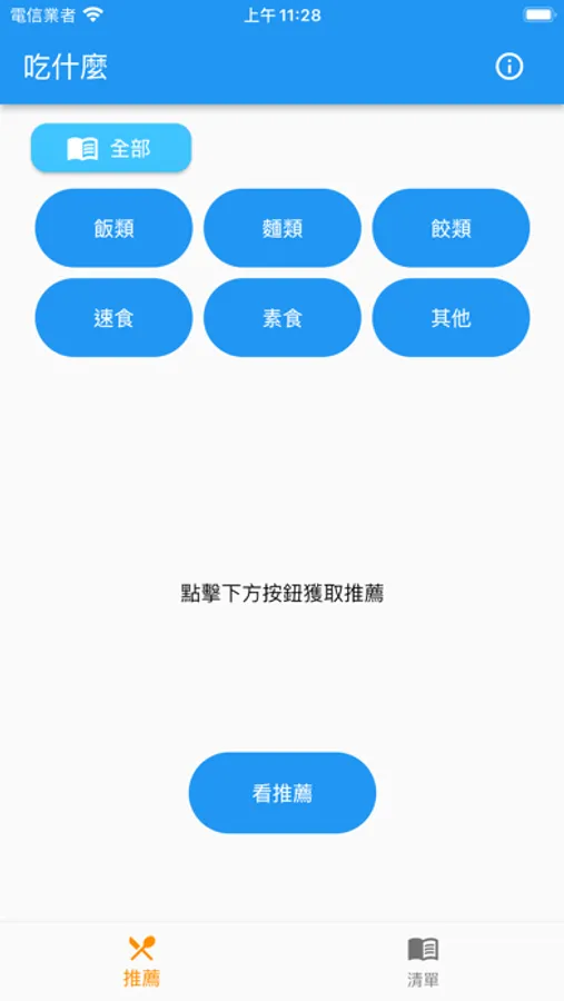 填入四周的餐廳讓APP幫助你釐清今天可以吃什麼!