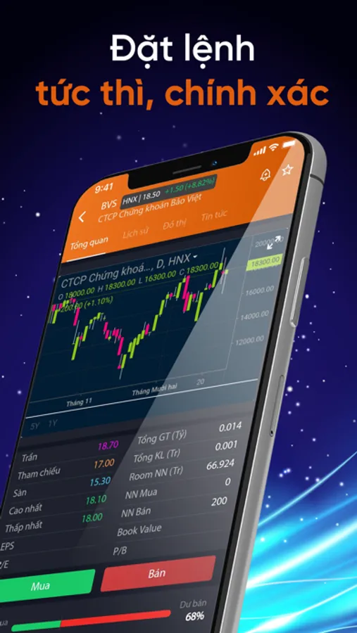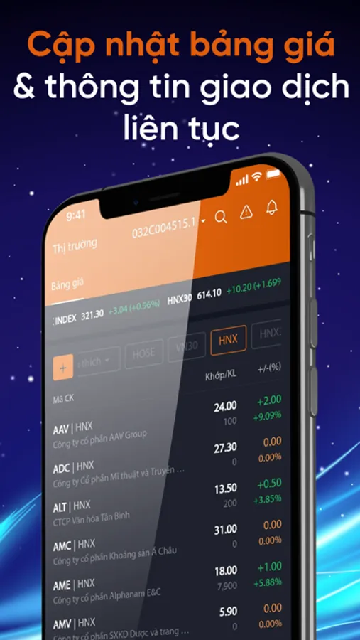 - Thông tin thị trường, giao dịch được cập nhật liên tục