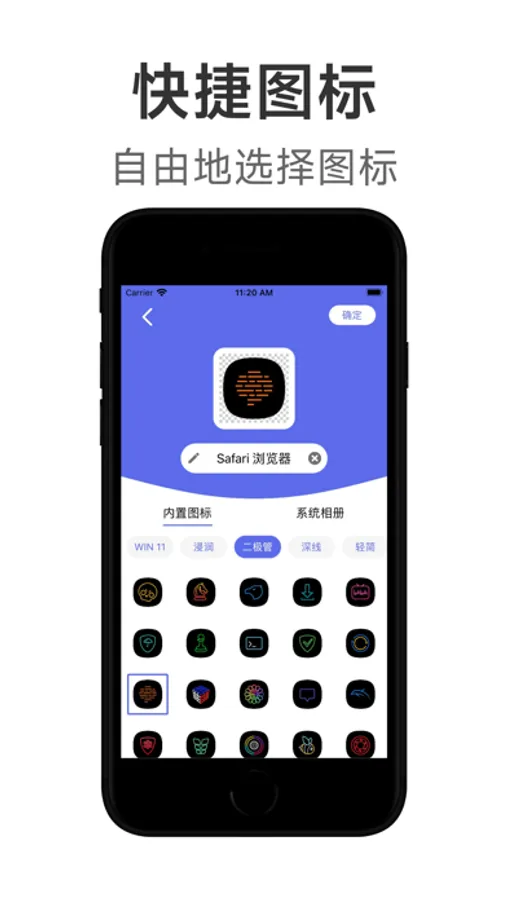 3. Select an icon from the built-in icons, or select an image from the camera and album as the app icon, and click Confirm;