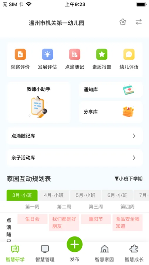 家园掌中宝-管理端是一款助力幼儿园课程实施的家园共育平台。为老师提供了更专业、更精准的成长体系、能落地的家园共育指导,在赋能老师与家长专业育儿能力提升的同时,还可自动生成成长册,形成每个孩子专属的成长轨迹。