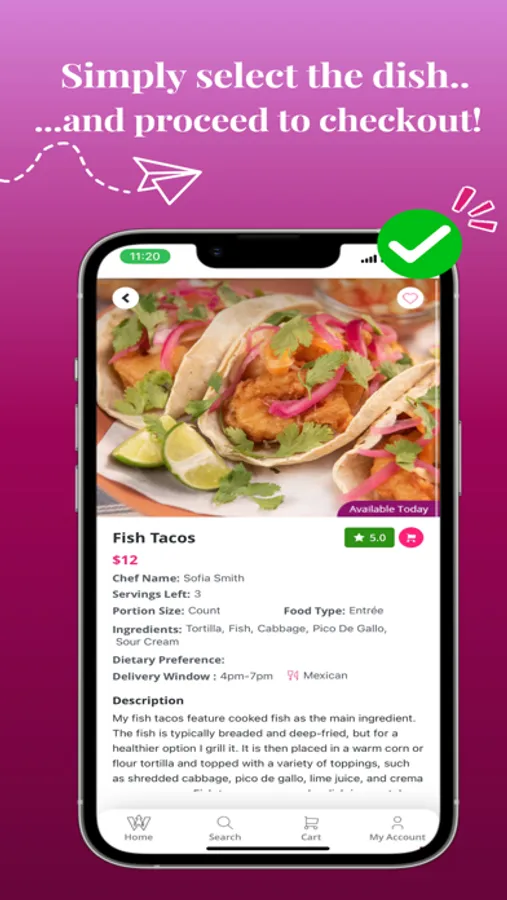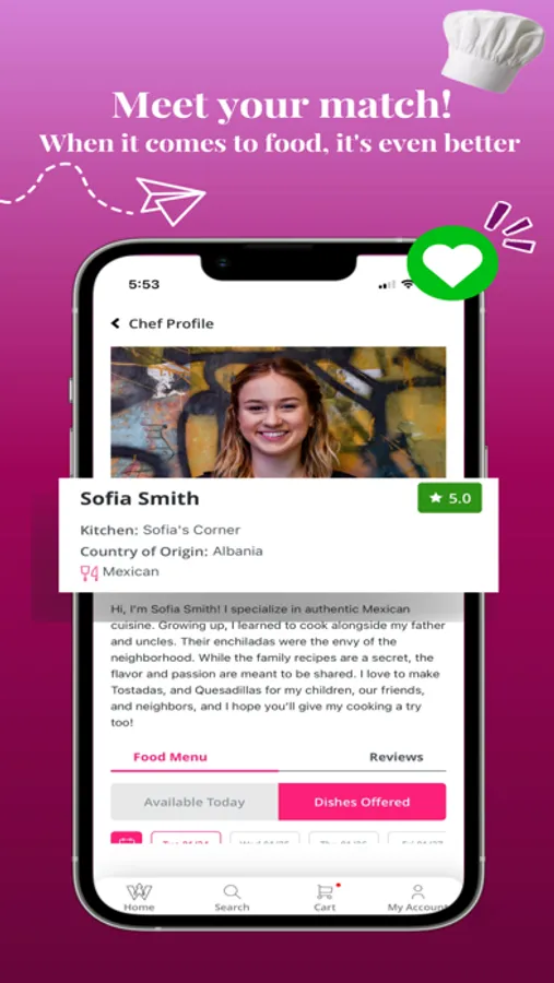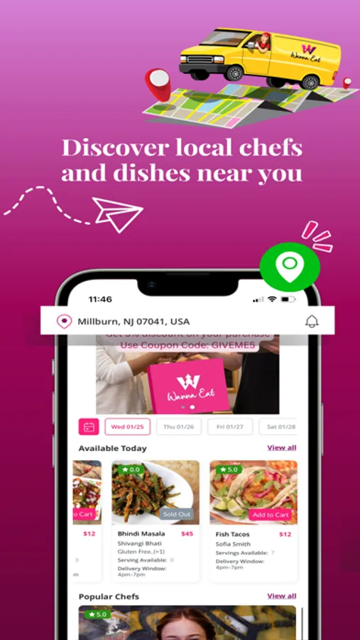 Home chefs are eager to showcase their talent. You can look for dishes that are available today or schedule your order for a future date. Add dishes to the cart, and checkout.
