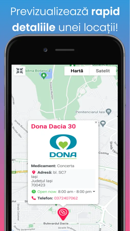 Ar fi minunat dacă ai putea vorbi cu cineva care a căutat același medicament în tot orașul, nu-i așa? Propunem o soluție: harta medicamentelor. Aplicația adună pe harta României locațiile farmaciilor unde se găsesc medicamentele rare de care pacienții au nevoie. Locațiile pot fi raportate atât de către pacienți, cât și de către deținătorii farmaciilor.
