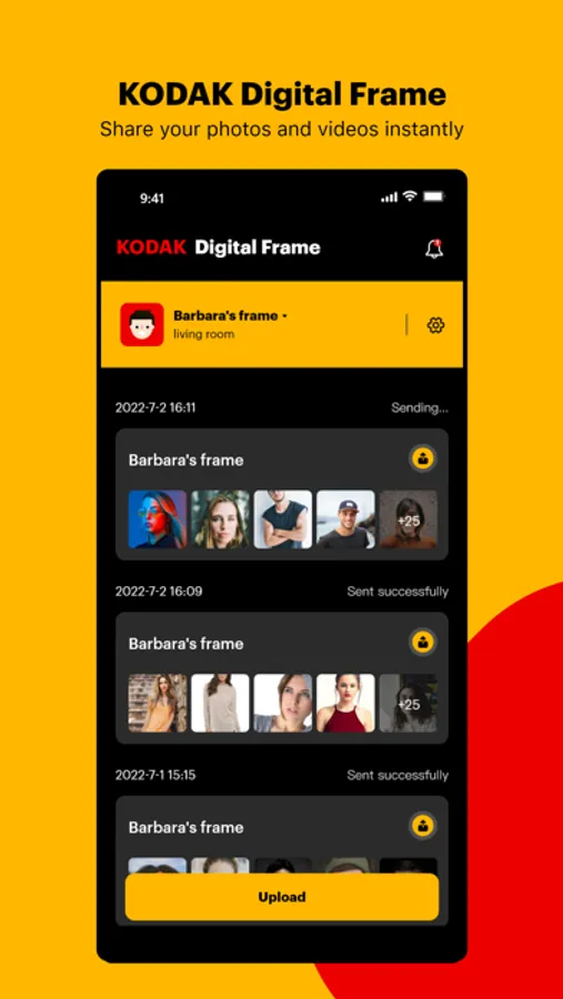 With the app you can send photos to all your connected KODAK Digital Frame wherever you are in the world. The photos will appear within seconds, so you can share the moments as they happen.