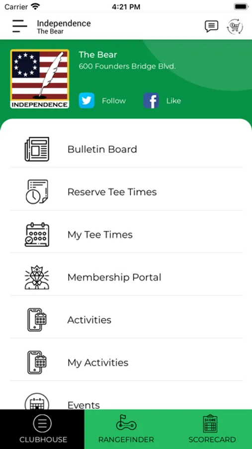 Independence GC gives you access to every golf course in the Independence GC portfolio. Enjoy access to an on course rangefinder, live scoring system, course information, weather updates, tee-time booking service, and messaging systems functions. Additionally, the Independence GC may be used to sign up for events, view your Membership portal, order food and beverage, and to receive course promotions at all Independence GC Golf Courses.