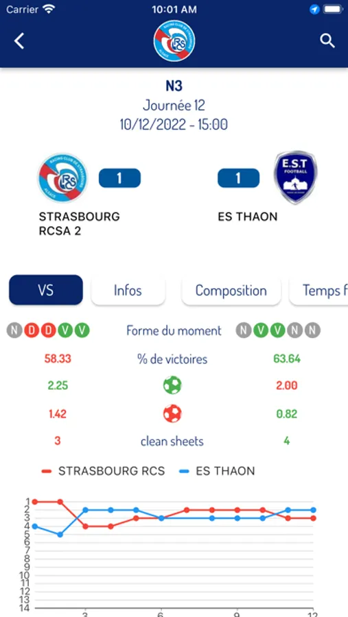 Avec l'App de la Racing Mutest Académie, tu accèdes aux résultats, calendriers et classement de l'ensemble des équipes du club.