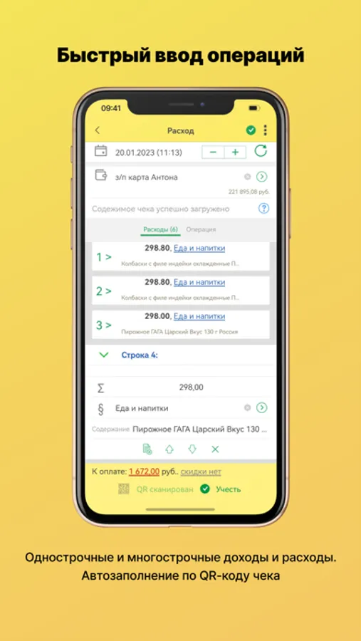 * быстрое заполнение расходов по QR-кодам чеков (только для чеков в РФ)
