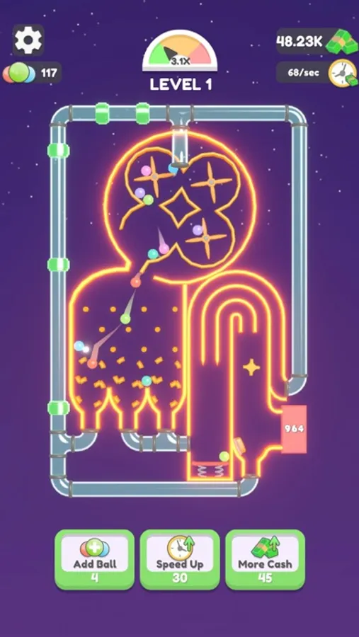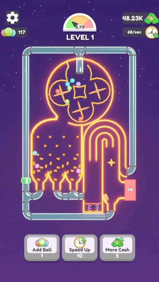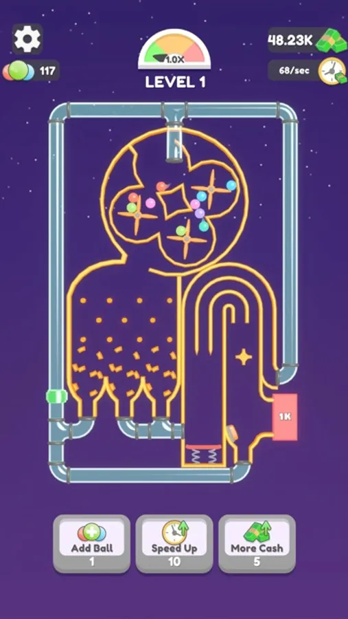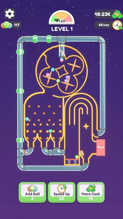 Buy more balls, increase the speed of the machine and add more earning gates.