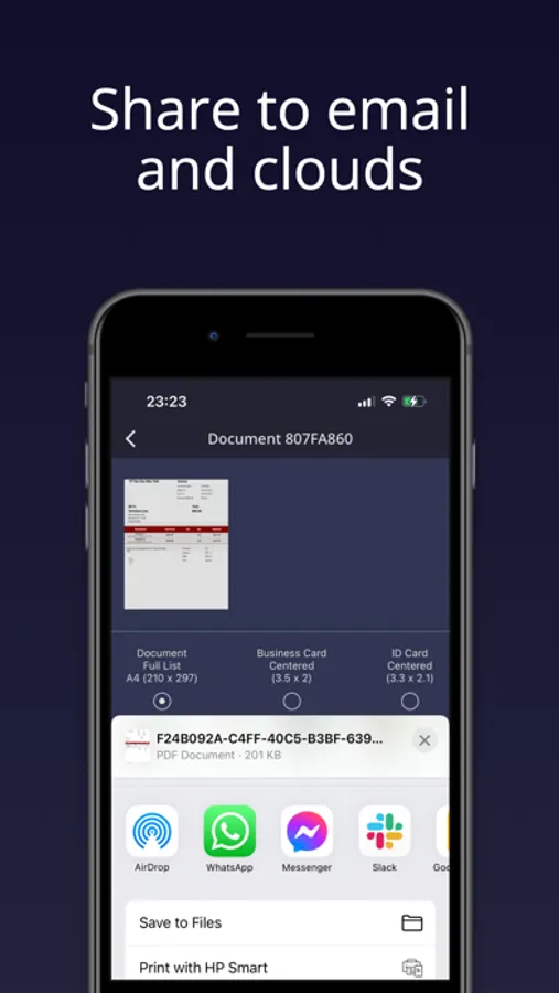 - Print PDF files, such as contracts and invoices, right from the scanner app.
