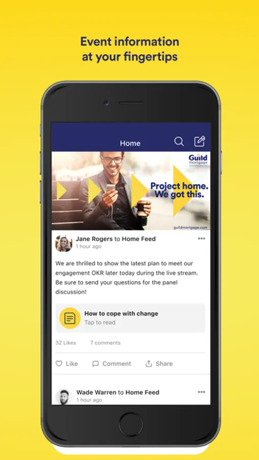 The Guild Mortgage Events app is utilized for all of our current and future events. In here, you can review schedules, maps, and network amongst attendees.