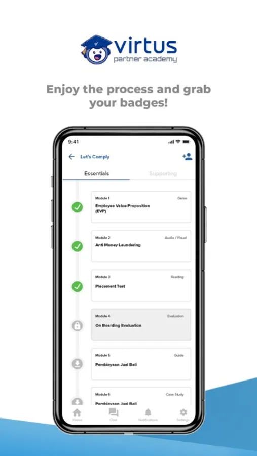 Virtus Partner Academy adalah sebuah platform pembelajaran yang memudahkan learners mendapatkan berbagai pengetahuan dan informasi terkait perusahaan dan pekerjaan. Dirancang sangat personal, relevan, efisien dan efektif serta memberikan sensasi belajar yang menyenangkan.