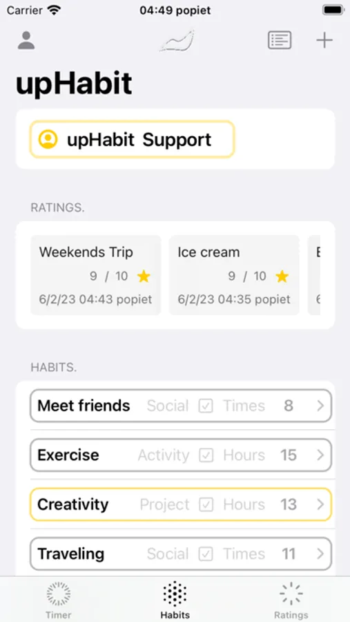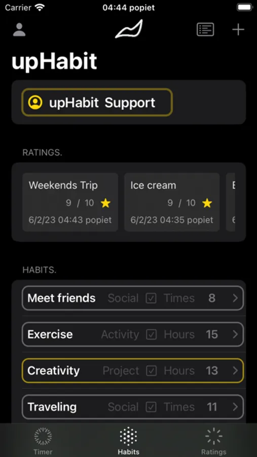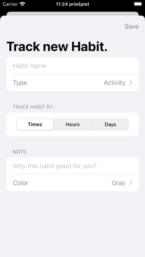 - Pick type of habit or activity "Freetime", "Social", "Work", "Project", etc.