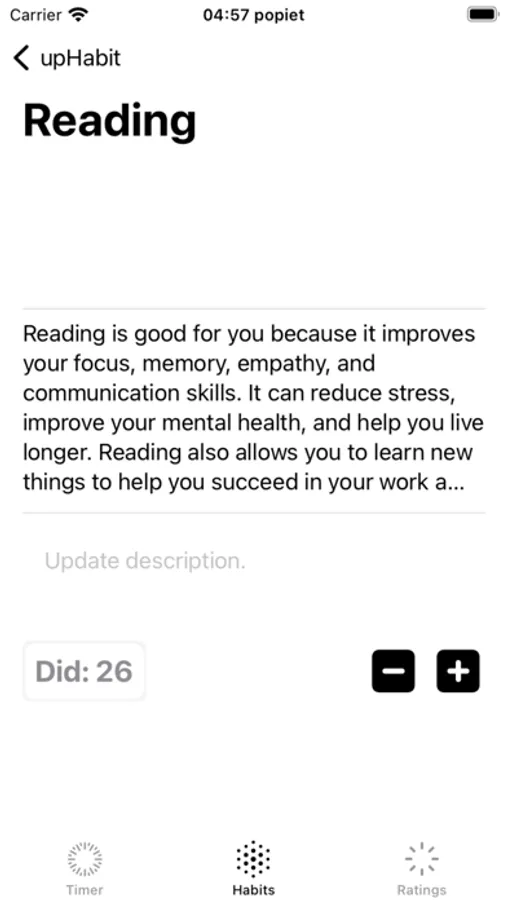 - Set time for another stepper and after again squared plus button, until you set your full activity or habit time.