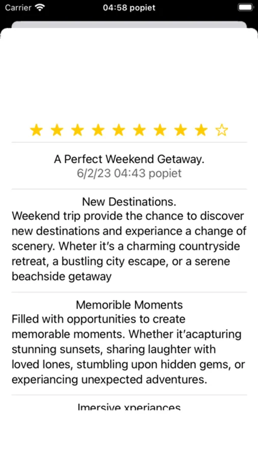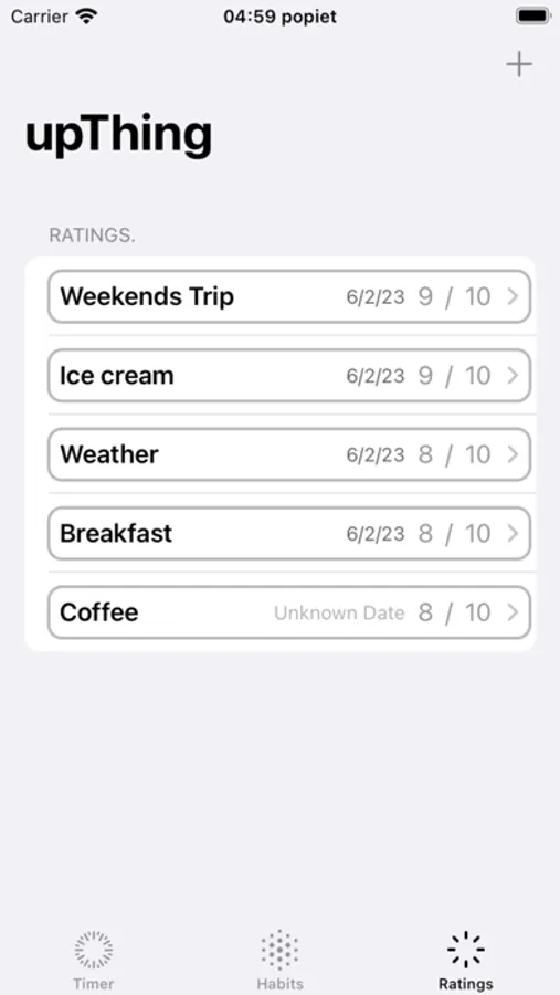 - Every new section have own name and description, for that easer to describe activity, thing, food, drink, water, gadget or anything else who wanna rate.