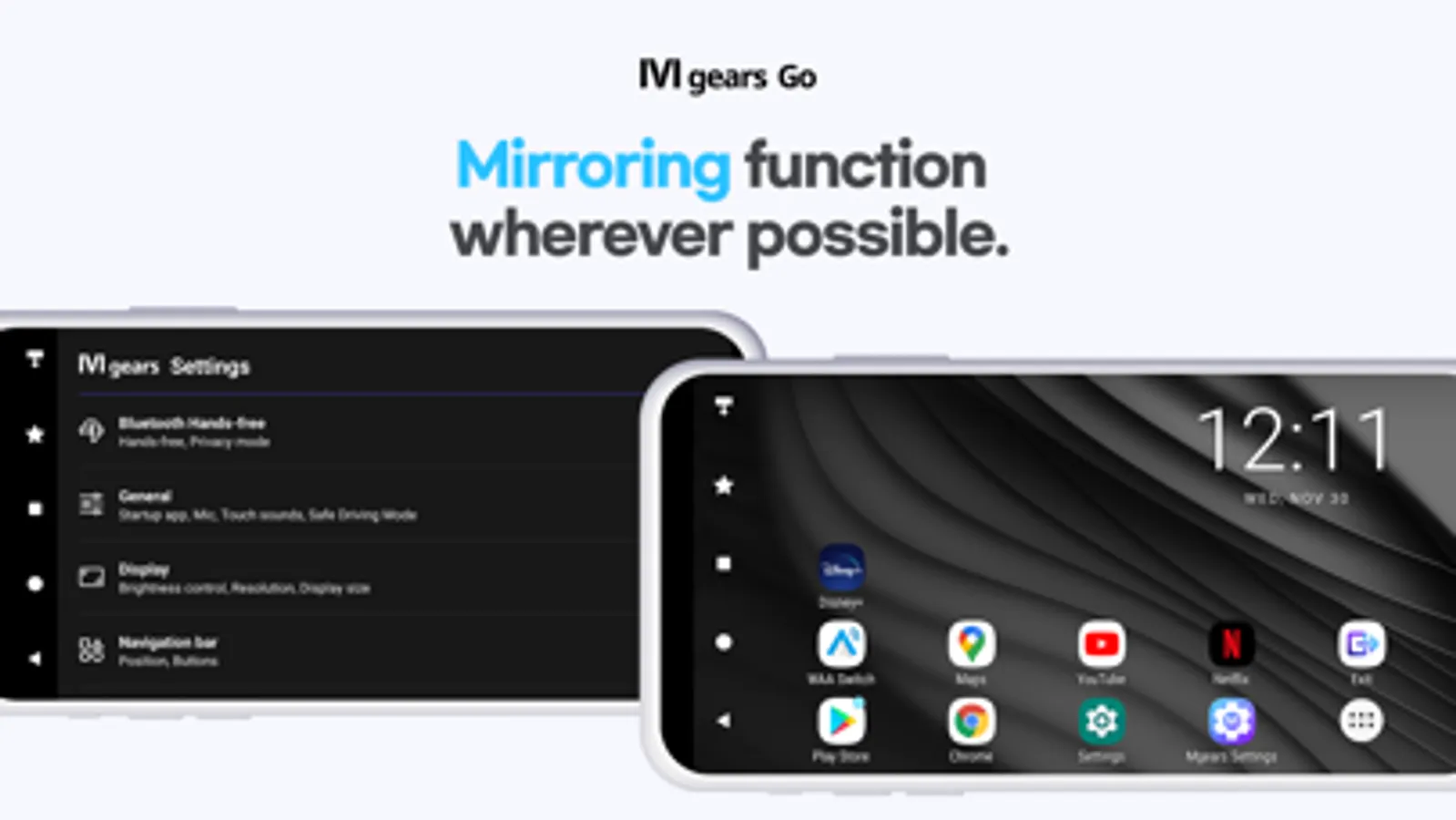 : Using Mgears Go's 'Mirroring' remote control function, you can install apps anywhere, anytime.