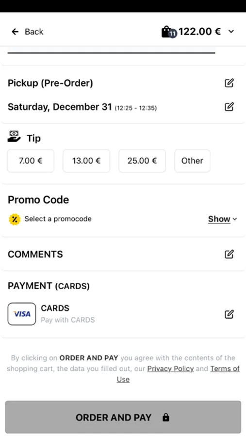- Durchsuchen Sie die Speisekarte des Restaurants und sehen Sie sich alle anpassbaren Optionen im Voraus an