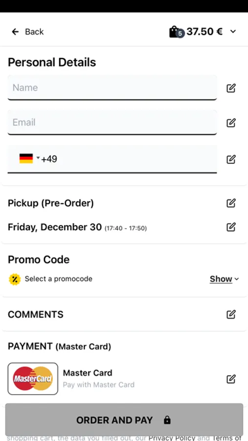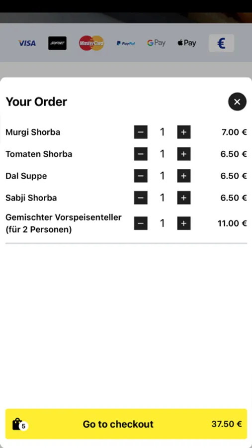 - Durchsuchen Sie die Speisekarte des Restaurants und sehen Sie sich alle anpassbaren Optionen im Voraus an