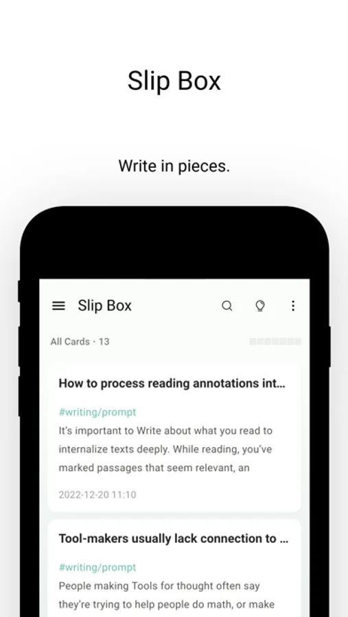 - Card Writing Mode: Drag, drop, sort, edit and insert cards to generate page.