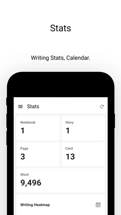 - Writing Stats: Writing heatmap, timeline and notebook/story/page/card/word count.