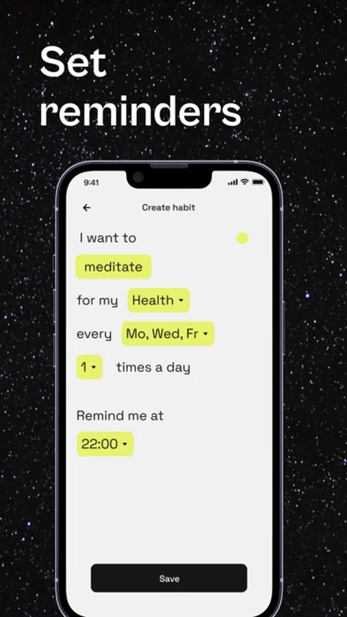 Set your personalized reminder. How many times a day do you want to get reminded? Add your time range, and your motivation, and save. Your new habit is ready!