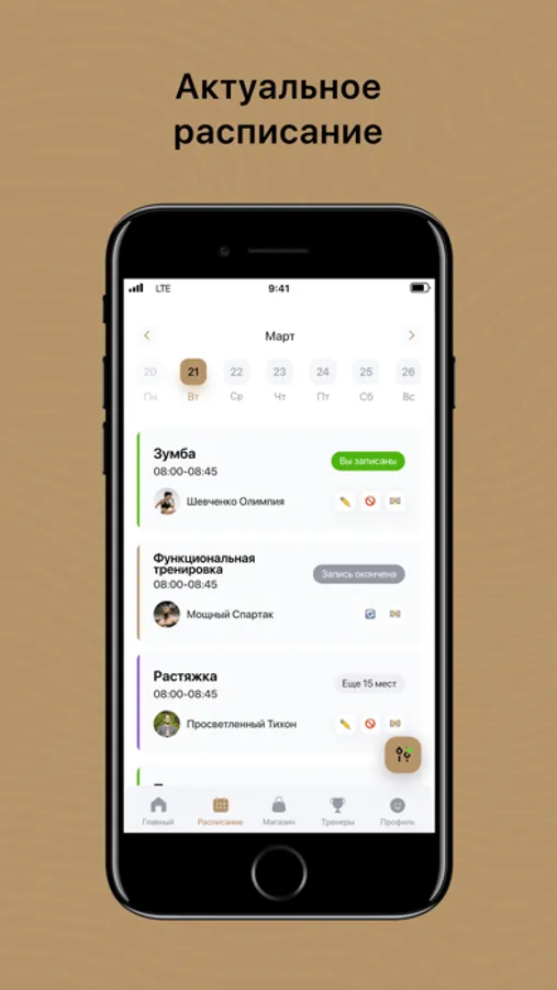 Посмотреть актуальное расписание тренировок;