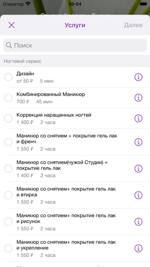 * перечень услуг с указанием стоимости